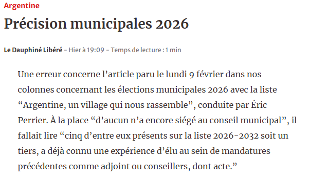 Erratum Le Dauphiné Libéré du 11 février 2026
